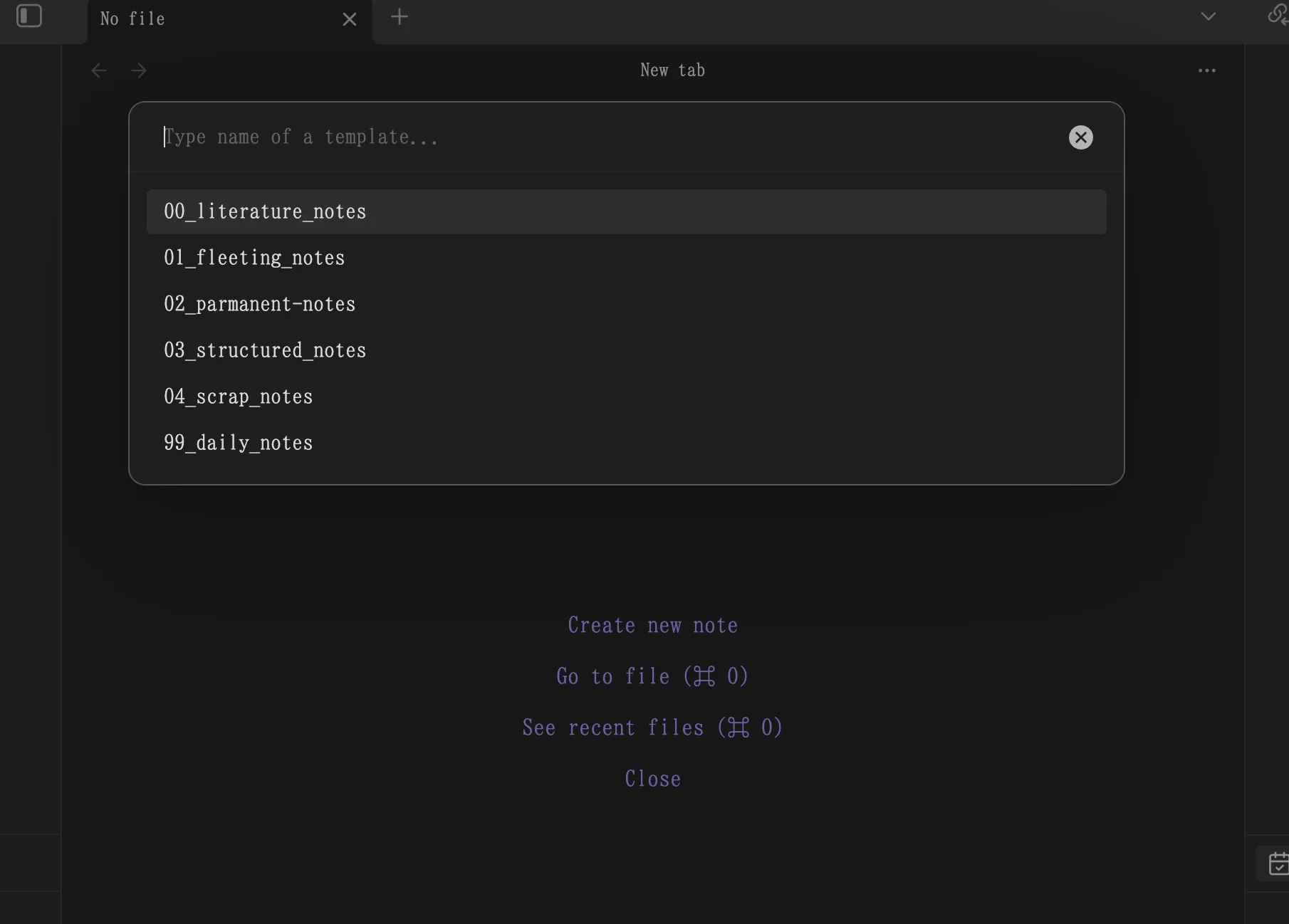 以上でセットアップは終了で、設定したホットキー(Cmd + Nなど)を押すとテンプレートからノートを作成できるようになる。 他のフォルダ用のテンプレートも同様に作成すればよい。
